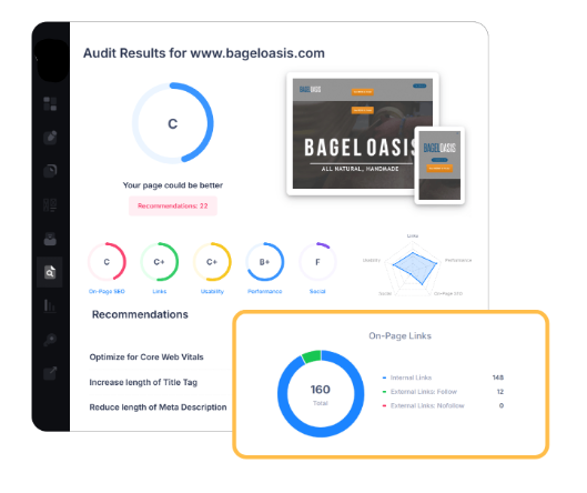 Behind the scenes, our audits follow the same pillars SEOptimer is known for: content, accessibility, performance, and trust signals.